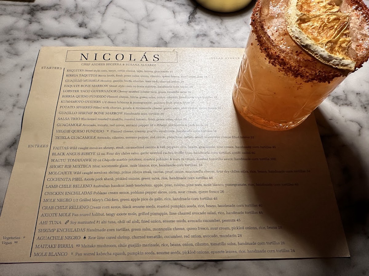 ⭐⭐⭐⭐⭐ Best Meal & Drinks in the USA! We’re on a massive 30-day road trip from Vegas to LA to San Francisco—planned three months in advance from Pittsburgh, PA—and Nicolas Cocina de Herencia was *the* number one dining experience of the whole journey. Poula, was hands-down the best server we've ever had. She explained everything beautifully and helped us choose cocktails with unique ingredients we’d never heard of. She even walked us through the hibiscus process behind one of the drinks—super cool. The staff was warm, sweet, and attentive. When they saw me taking a photo of the kitchen, they invited me to peek inside and I got to watch them make tortillas from scratch. So impressive. I had the halibut with mole (phenomenal), and my girlfriend had a fire-roasted poblano pepper stuffed with the best Dungeness crab in California. The cocktails? Absolutely top-tier. I had several mezcal-based drinks that blew me away. Next time I’ll be trying the wine! Huge thanks for an unforgettable evening. I wouldn’t be surprised to see you with a Michelin star in the near future. Cheers, Adam & Kaley
